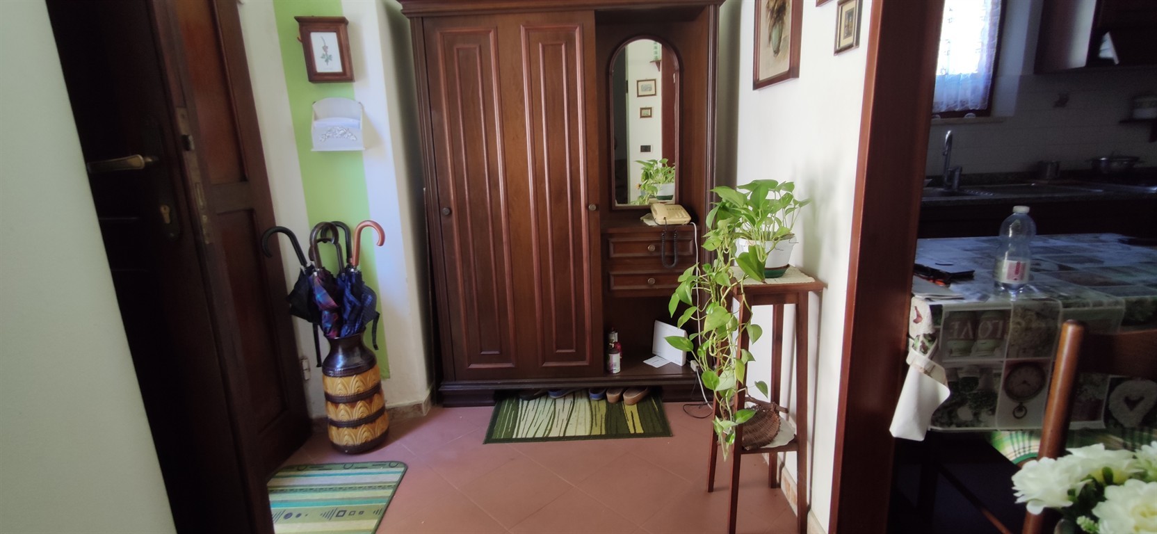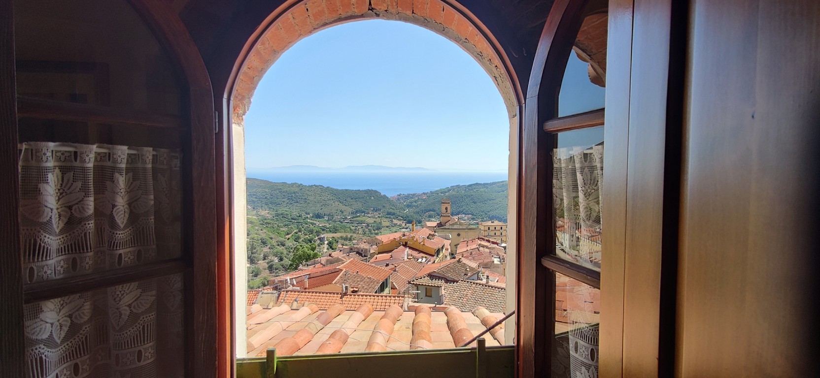 A differenza della maggior parte degli appartamenti del centro storico, è possibile giungere con l'autodirettamente davanti alla porta di casa, la strada termina poche centinaia di metri più avanti ed è percorsa solamente dai residenti. Quanto all' unità immobiliare, essa si presenta in buono stato e si sviluppa su due livelli: il piano terreno è suddiviso in ingresso, soggiorno, cucina abitabile, ampia camera matrimoniale e ripostiglio. Pochi gradini al di sopra si trova il bagno e successivamente un'altra camera con spettacolare vista sul paese e sul mare. L'unità viene proposta completamente arredata.