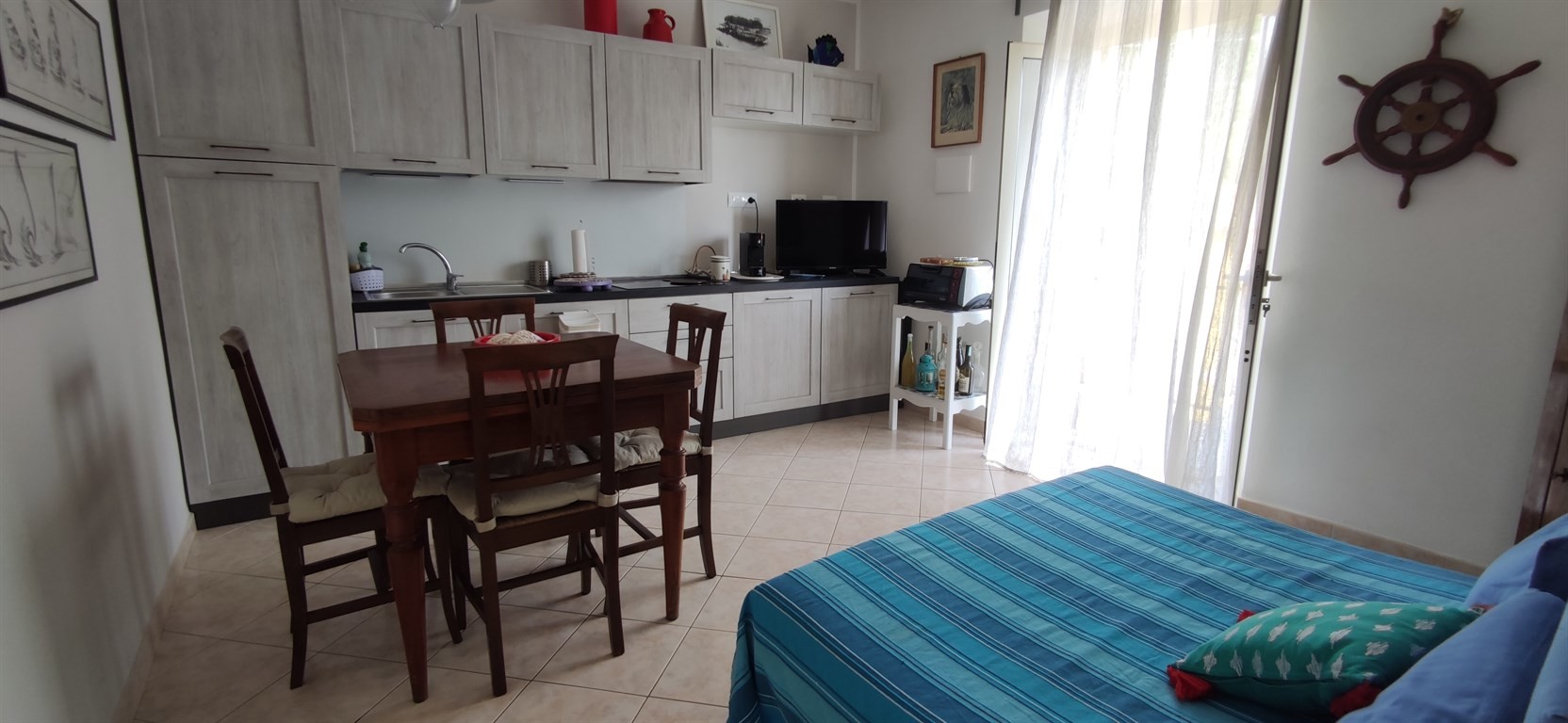 CAVO - A circa dieci minuti a piedi dalla spiaggia e dal porto ed in posizione tranquilla e pianeggiante rispetto al centro del paese, appartamento in bifamiliare finemente ristrutturato completato da ampio balcone, locale ad uso ripostiglio/lavatoio e giardino in parte pavimentato. L' abitazione, che è stata recentemente ristrutturata, presenta ingresso indipendente e si sviluppa al primo ed ultimo piano al quale si accede da una rampa privata di scale. L'interno si compone di un ampio vano d'ingresso da cui è agevole, con l'apposizione di un piccolo tramezzo, ricavare una cameretta. A lato dell'ingresso si trovano il soggiorno con angolo cottura, la camera matrimoniale ed un bagno finestrato. Sia il soggiorno che la camera accedono direttamente al balcone che si sviluppa lungo la facciata dell'edificio e potrebbe essere suscettibile di ampliamento diventando una confortevole terrazza. Completamente climatizzato ed accessoriato, l'appartamento riceve aria da tre lati e si presenta luminoso e ben ventilato. Perfettamente conforme dal punto di vista catastale ed urbanistico, esso rappresenta una ottima opportunità d'acquisto anche per chi volesse metterlo a reddito durante il periodo estivo.