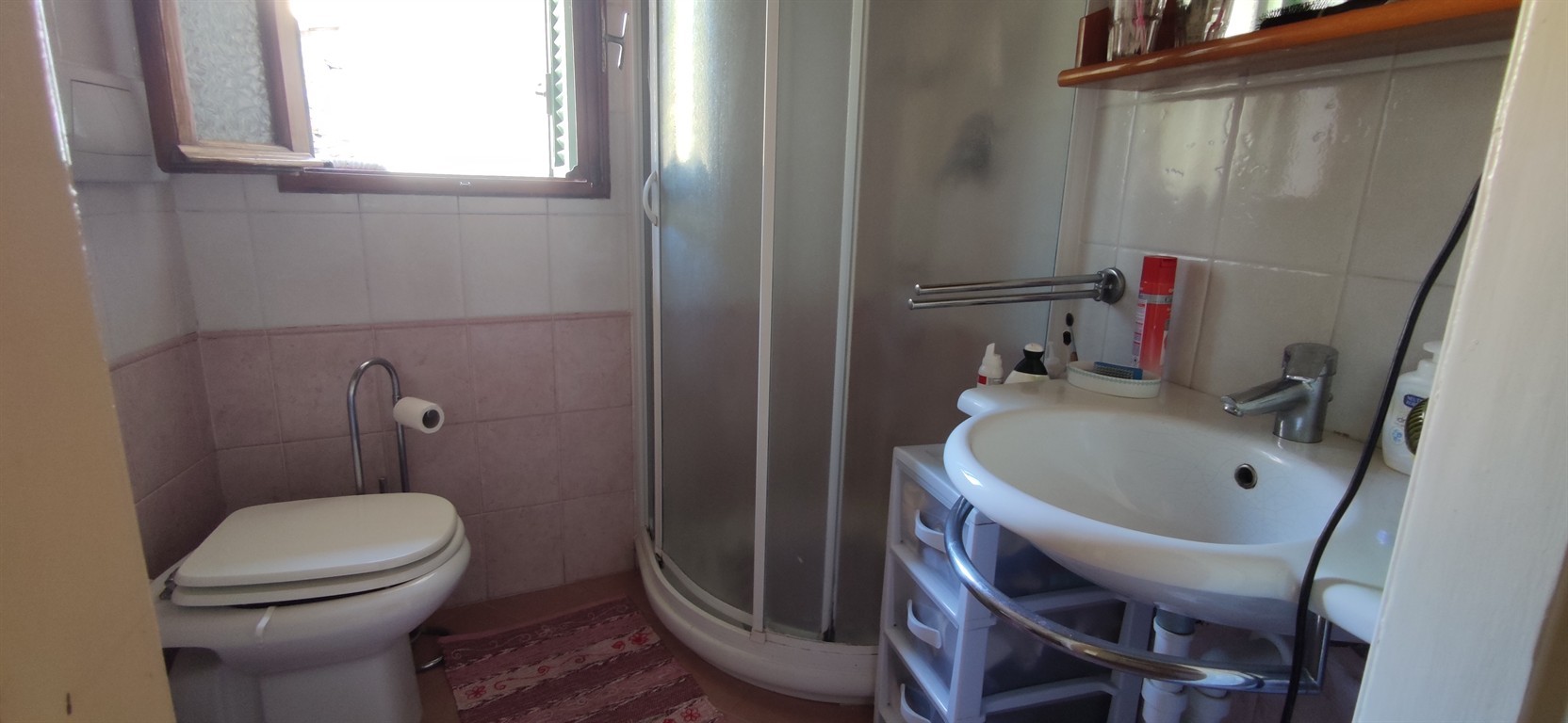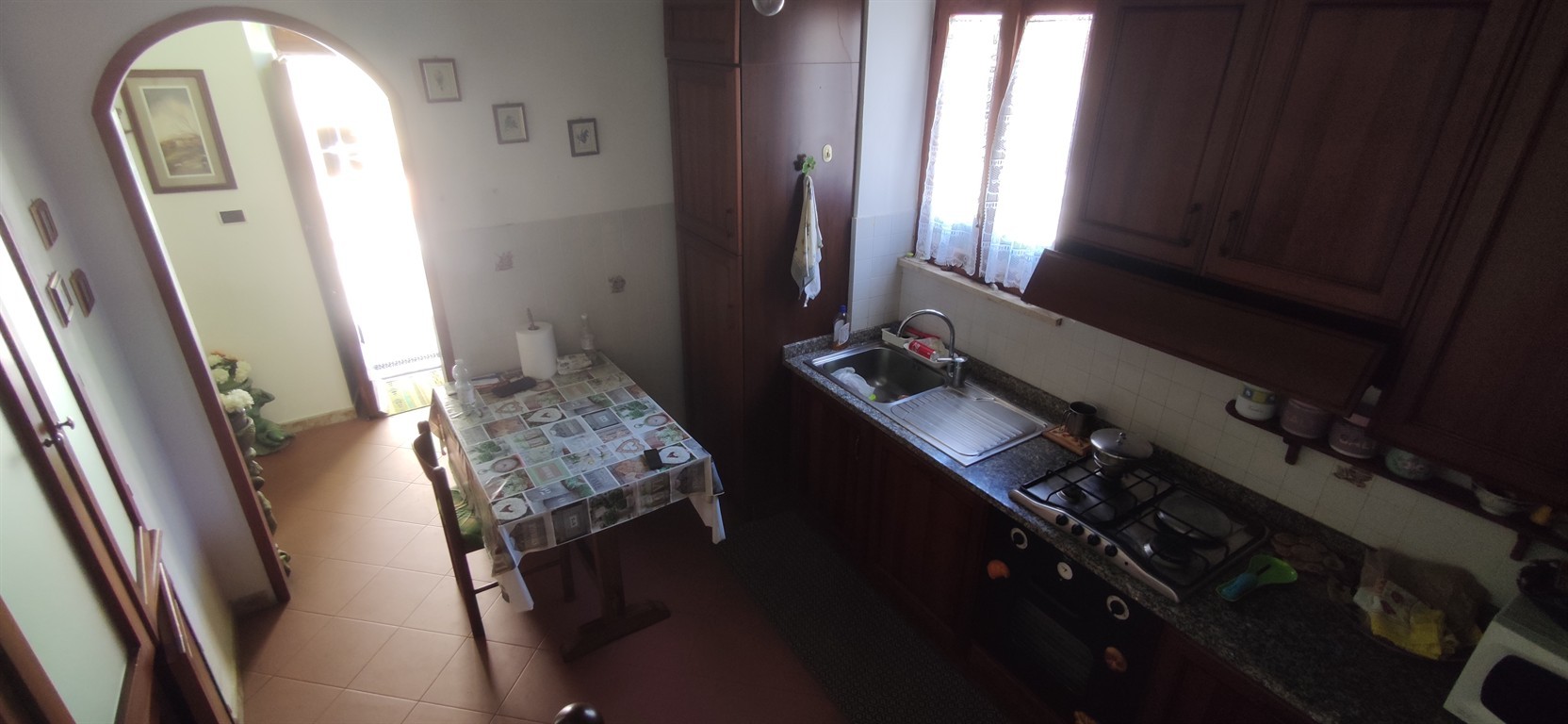 A differenza della maggior parte degli appartamenti del centro storico, è possibile giungere con l'autodirettamente davanti alla porta di casa, la strada termina poche centinaia di metri più avanti ed è percorsa solamente dai residenti. Quanto all' unità immobiliare, essa si presenta in buono stato e si sviluppa su due livelli: il piano terreno è suddiviso in ingresso, soggiorno, cucina abitabile, ampia camera matrimoniale e ripostiglio. Pochi gradini al di sopra si trova il bagno e successivamente un'altra camera con spettacolare vista sul paese e sul mare. L'unità viene proposta completamente arredata.