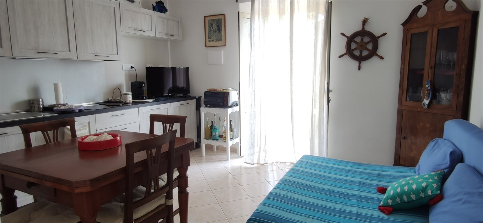 CAVO - A circa dieci minuti a piedi dalla spiaggia e dal porto ed in posizione tranquilla e pianeggiante rispetto al centro del paese, appartamento in bifamiliare finemente ristrutturato completato da ampio balcone, locale ad uso ripostiglio/lavatoio e giardino in parte pavimentato. L' abitazione, che è stata recentemente ristrutturata, presenta ingresso indipendente e si sviluppa al primo ed ultimo piano al quale si accede da una rampa privata di scale. L'interno si compone di un ampio vano d'ingresso da cui è agevole, con l'apposizione di un piccolo tramezzo, ricavare una cameretta. A lato dell'ingresso si trovano il soggiorno con angolo cottura, la camera matrimoniale ed un bagno finestrato. Sia il soggiorno che la camera accedono direttamente al balcone che si sviluppa lungo la facciata dell'edificio e potrebbe essere suscettibile di ampliamento diventando una confortevole terrazza. Completamente climatizzato ed accessoriato, l'appartamento riceve aria da tre lati e si presenta luminoso e ben ventilato. Perfettamente conforme dal punto di vista catastale ed urbanistico, esso rappresenta una ottima opportunità d'acquisto anche per chi volesse metterlo a reddito durante il periodo estivo.