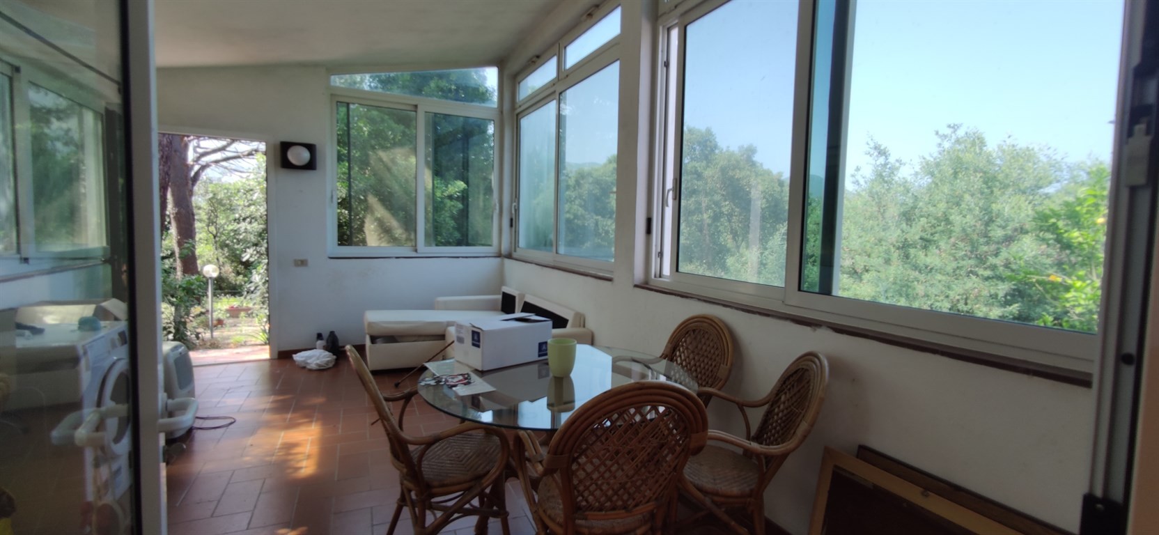 RIO NELL'ELBA - Ad appena 1km dall'abitato di Rio nell'Elba e 3 dalla spiaggia di Ortano, immersa nel verde e con spazi esterni per oltre 4.000mq, porzione di bifamiliare di 100mq ca con ingresso indipendente. L'abitazione si compone di un ampia veranda, che costituisce una vero e proprio soggiorno e piacevolissima per mangiare ricevendo luce da ampie vetrate poste su tre lati, soggiorno con zona tv, cucina semiabitabile, bagno e due camere matrimoniali. La proprietà è completata da un piccolo magazzino esterno, da un locale tecnico e dal terreno di pertinenza, in parte tenuto a giardino con abbondante spazio per il parcheggio degli autoveicoli ed in parte tenuto a parco con alberi di alto fusto che assicurano una piacevole ombra durante i mesi estivi.