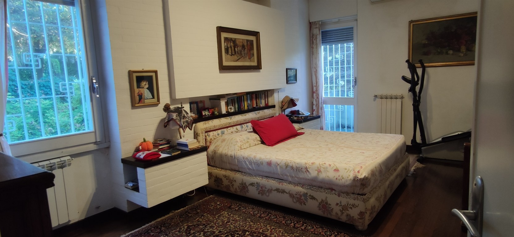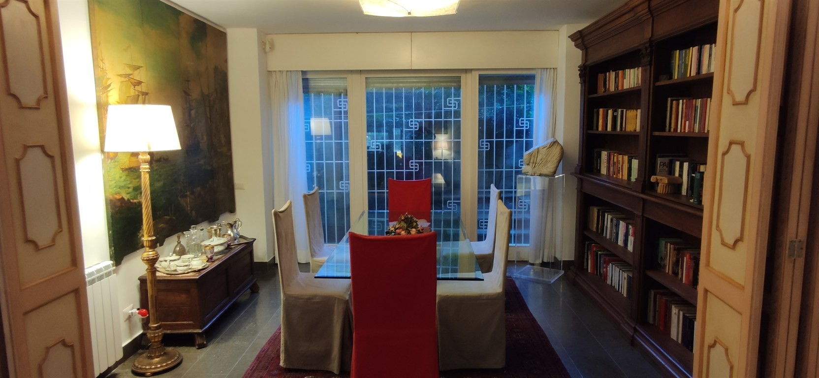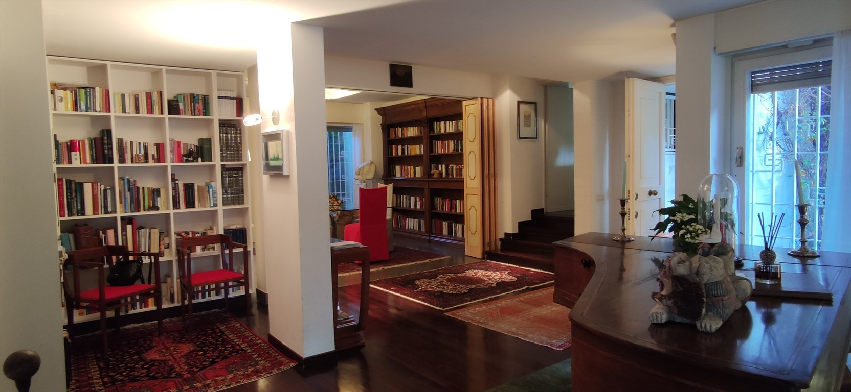 Camilluccia - Nella parte più esclusiva di Via della Camilluccia, immersa nel verde e circondata da un parco di proprietà di oltre 1.800mq. villa unifamiliare su tre livelli di circa 650mq di superficie coperta con spazi esterni terrazzati e balconati oltre a torretta, box auto di 75mq ca ed appartamento di guardiania. Finemente rifinito l'immobile comprende anche diversi locali di servizio ed è attualmente diviso in due unità catastali differenti (A/7), ciascuna con ingresso indipendente che possono essere facilmente messe in comunicazione mediantela rimozione di una porta blindata. L'ampiezza della zona esterna, accessoriata e tenuta a giardino in prossimità della casa, ne assicura la godibilità in ogni periodo dell'anno.